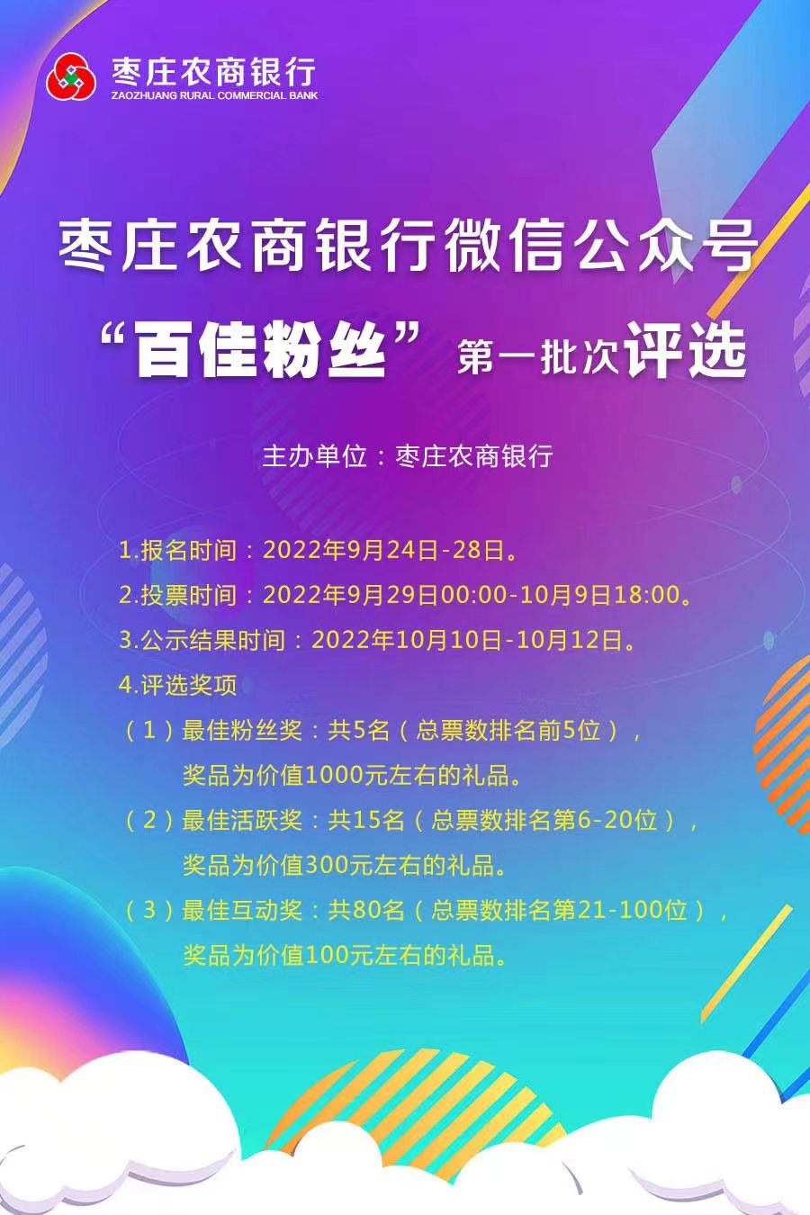 棗莊農(nóng)商銀行微信公眾號"百佳粉絲"第一批次評選開始,有神秘大禮