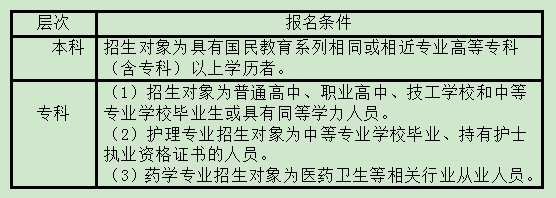 按照國家開放大學(xué)規(guī)定,2024年春季各專業(yè)報(bào)名學(xué)生年齡需年滿17周歲(2007年3月31日(含)前出生),并按所報(bào)考層次分別滿足下列條件: